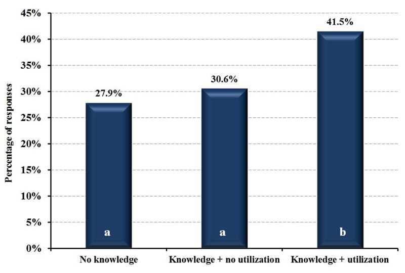 There was no significant effect for years of experience on the utilization of BF materials. Also, the effect of gender was not significant (females = 49.2%, males = 36.6%; p= 0.172). However, Post-hoc analysis with Bonferroni correction revealed that unemployed participants had lower utilization compared to the employed groups (p = 0.017).