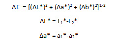 The optical parameters were determined using a spectrophotometer (ColorQuestXE, Hunter Associates Laboratory, Inc., Virginia, USA.). The spectrophotometer was set to the standard illumination source D65 according to the CIELAB color scale. Three measurements of L*, a*, and b* were recorded for each specimen and averaged to obtain a value for the following calculations.