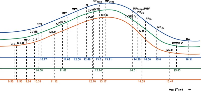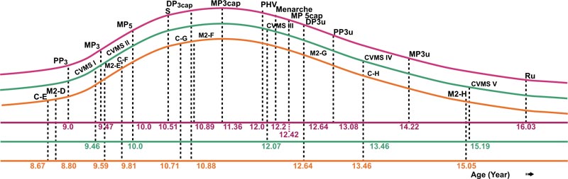 Keywords: CVMS, Dental calcification, Hand-wrist, Menarche, PHV, Pubertal growth plot.
