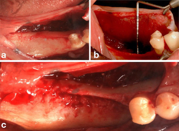 The mandibular posterior region frequently shows three-dimensional bone defects, demonstrating limitations during its rehabilitation mainly due to the presence of noble structures, such as the mandibular canal and inferior alveolar nerve. In addition, there is often a deficiency of the soft tissue in terms of quantity and quality in this region [1]. In this way, surgical techniques were developed to enable the placement of implants in the mandibular posterior region [2, 3]. Among all the techniques available, guided bone regeneration (GBR) is currently the most used approach for bone reconstruction in implant dentistry [4].