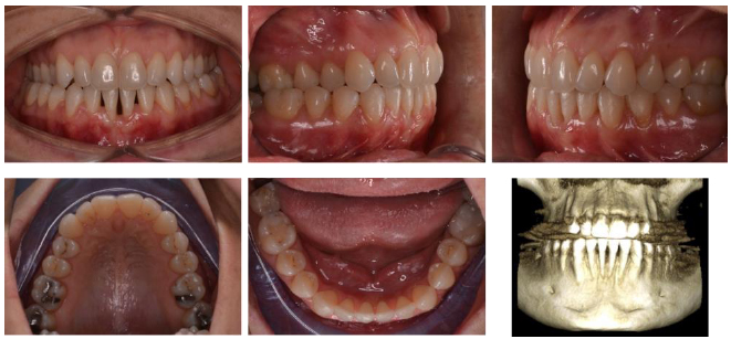A 31-year-old female with a mandibular midline diastema asked for an aesthetic treatment. She had vertical bone loss on the lower central incisors, so a CBCT was necessary in order to plan the root movements. The purpose of the treatment was to avoid an uncontrolled tipping of the incisors and, therefore, a vestibular movement of the roots, which could cause serious periodontal problems.
