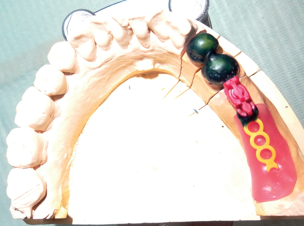 Fig. (4). The attachment fixed to the wax pattern of second premolar.