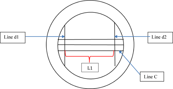 Fig. (2). Diagram of the stainless-steel ring and die line shows line C, measurement of L1 between d1 and d2.