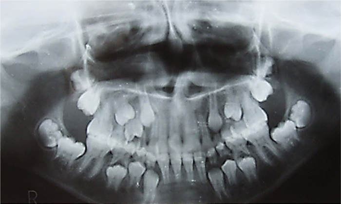 A healthy 10-year-old Egyptian girl visited the pediatric dentistry clinic at the Qassim University, Saudi Arabia, with her mother on 1/2/2019. The girl complained that she looked ugly because of one of her anterior teeth and the poor arrangement of the other anterior teeth.
