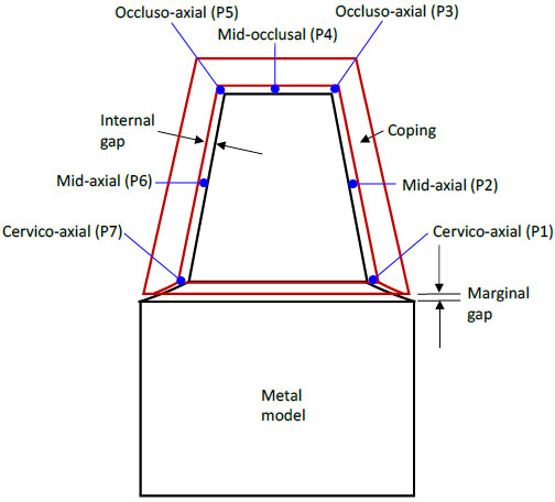 - Regardless of die material, the gap at occlusal surfaces was significantly higher than axial surfaces.