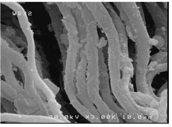 First, the dentin samples were immersed in 5M hydrochloric acid and 5% NaOCl solution after rinsing in distilled water for 30 seconds. Then after rinsing in distilled water for dehydrating the dentin surface, the samples were immersed in a mixture of water and ethanol with increasing concentrations of ethanol (50%, 70%, and 80%) for 15 minutes in each mixture, followed by immersion in 95-100% ethanol for 30 minutes. After drying, the samples were placed on an aluminum stud for coating with 5-nm gold particles (Desk Sputter Coater, DSR1). The samples were evaluated under a scanning electron microscope at 5 kV at ×800 and ×3000 magnifications.