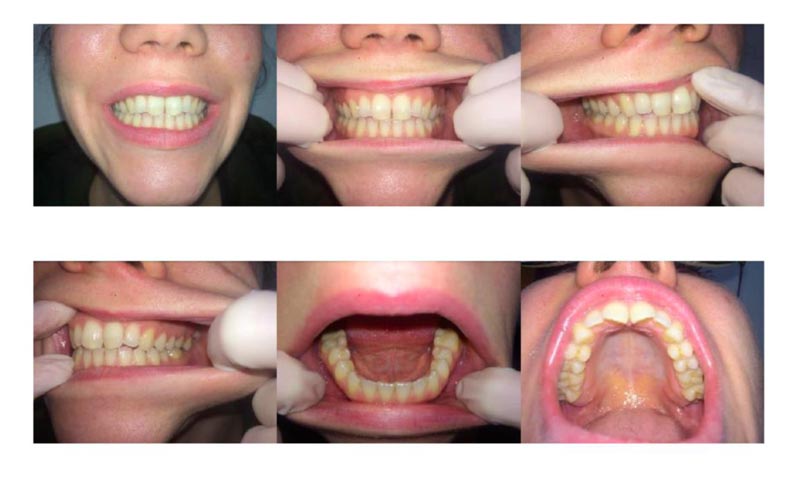 - Patients sent six photographs via WhatsApp® application after taking them autonomously. They had to take the photos with the flash always activated and using fingers to move the lips apart. The shots allowed to observe the patient's smile, the frontal projection of the mouth in occlusion, the right and left lateral projections in occlusion, the maxillary arch and the mandibular arch in occlusal view (Fig. 2).
